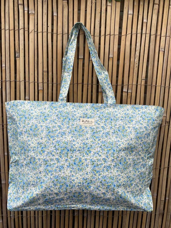 Deze strandtas heeft aan de zijkanten een extra vakje.