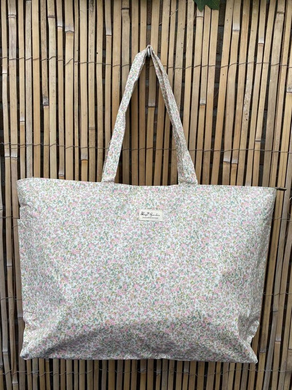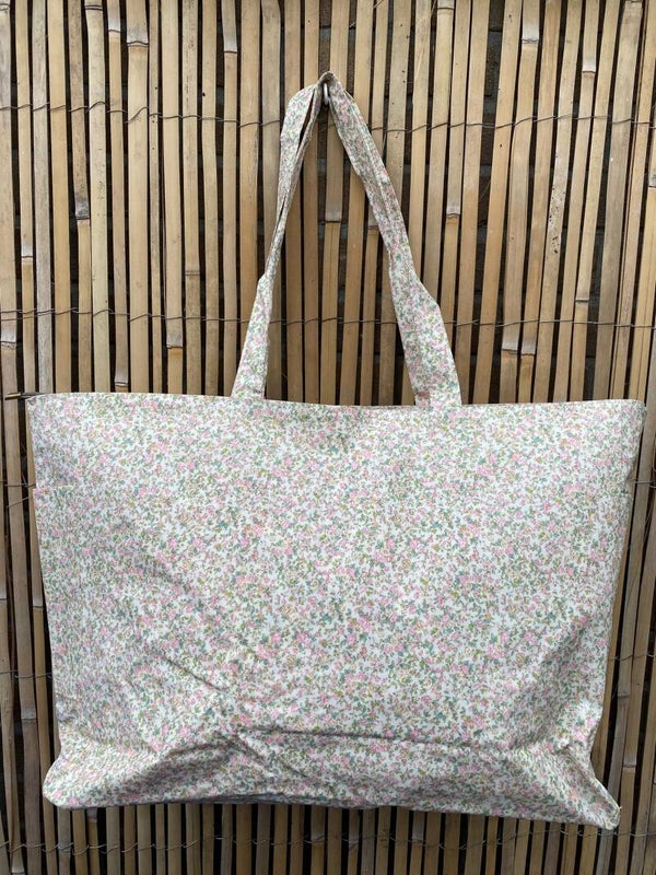 Deze strandtas heeft aan de zijkanten een extra vakje.