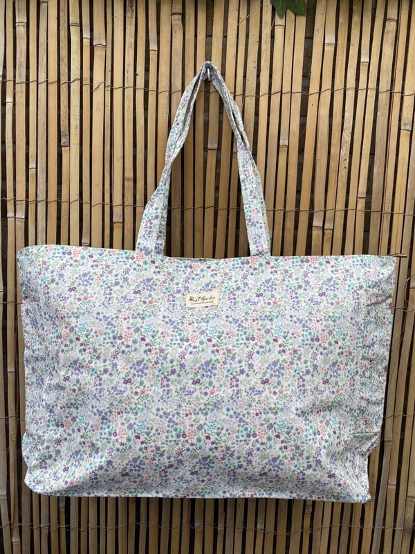 Deze strandtas heeft aan de zijkanten een extra vakje.