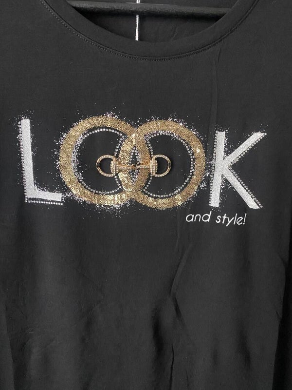 Artikel, Zwart shirt Look met gouden opdruk