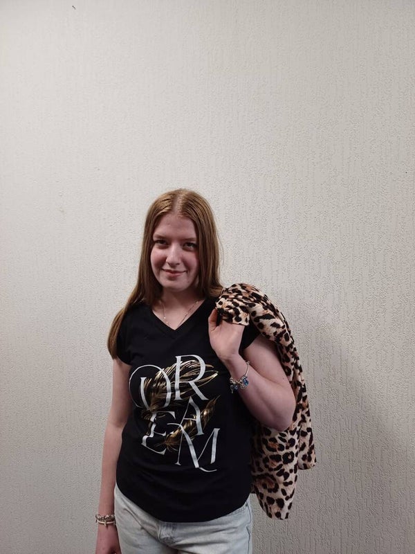 Artikel, Zwart shirt Olra met goud/witte opdruk